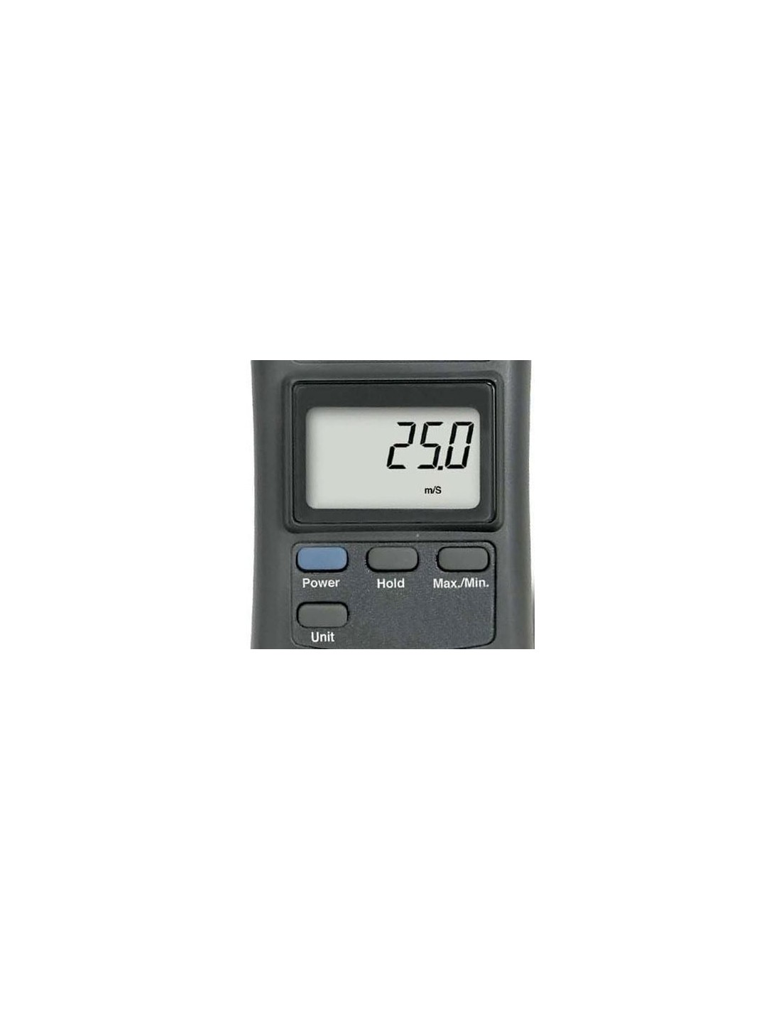 Com seu design leve e pequeno este anemômetro digital é ideal para ser operado com apenas uma mão e possui um bracelete individual que fornece uma proteção extra ao medidor. É um anemômetro digital de fácil operação que realiza medições em até cinco unidades diferentes, memoriza valores máximos e mínimos, congela as leituras no mostrador LCD e tem função de desligamento automático.