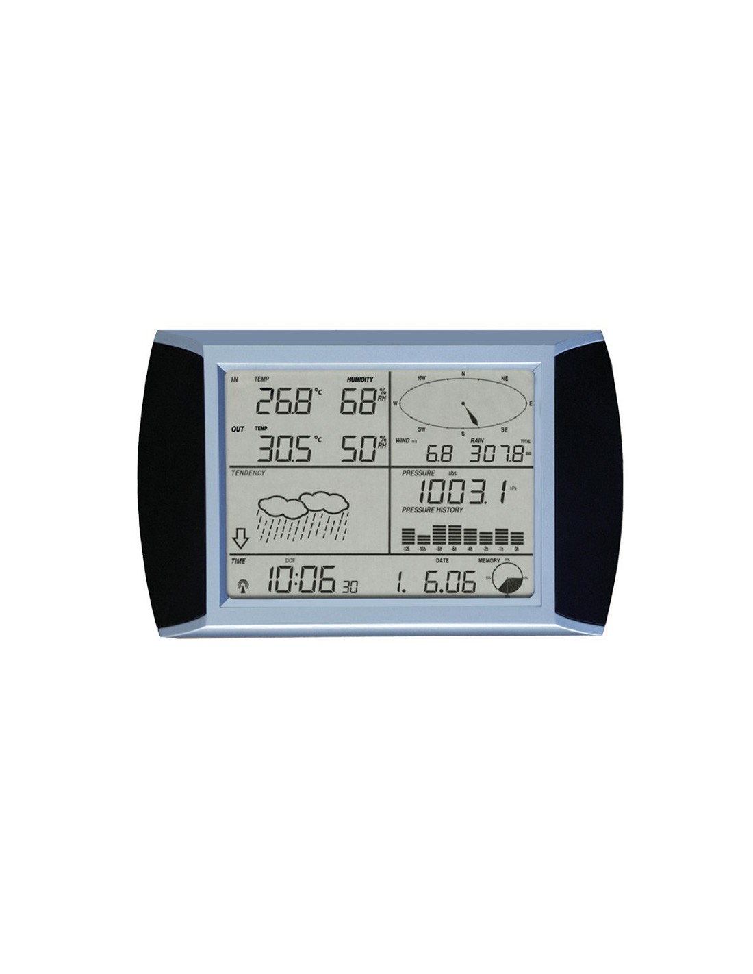 Um complemento à medição de temperatura, umidade relativa, pressão atmosférica, índice pluviométrico, velocidade e direção do vento, a estação meteorológica também dispõe de um relógio, calendário, indicação de segundo e com função de troca de fuso horário. No mostrador da estação climática também temos um indicador de preenchimento de memória, no formato de um relógio de 0 a 100% de capacidade.