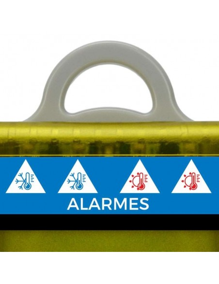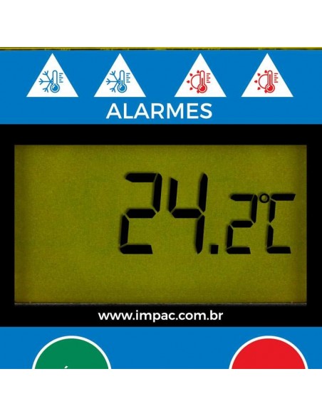 É possível determinar um limite de temperatura superior e inferior diretamente no painel do datalogger, determinando quanto tempo os produtos estiveram fora das especificações, visualização em Leds coloridos dos alarmes acima ou abaixo pré determinados.