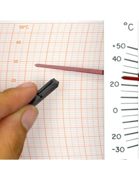 O sensor de temperatura é um sistema bimetálico enrolado estrategicamente de uma forma helicoidal e quando existir uma oscilação da temperatura este bimetal tende a contrair ou retrair fazendo com que o sistema mecânico movimente e devidamente calibrado ele transfere este movimento para a carta gráfica onde é feito o registro.