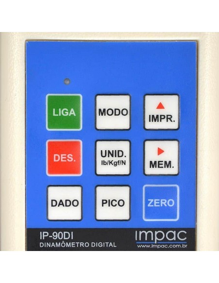 Os Dinamômetros Digitais Impac podem ser utilizados de uma maneira manual ou através de dispositivos de ensaio, onde as mesmas exercem a força, inclusive alguns modelos indicam o deslocamento. A família de Dinamômetros Digitais com Célula Externa IP-90 DI possuem diversas funções que facilitam a leitura e manuseio da força medida. Possuem memória interna para armazenar 896 leituras, Valor de Pico, função “Zero”. Permitem a medição de força em Quilogramas, Libras ou Newtons, bastando um simples toque de botão no painel.
