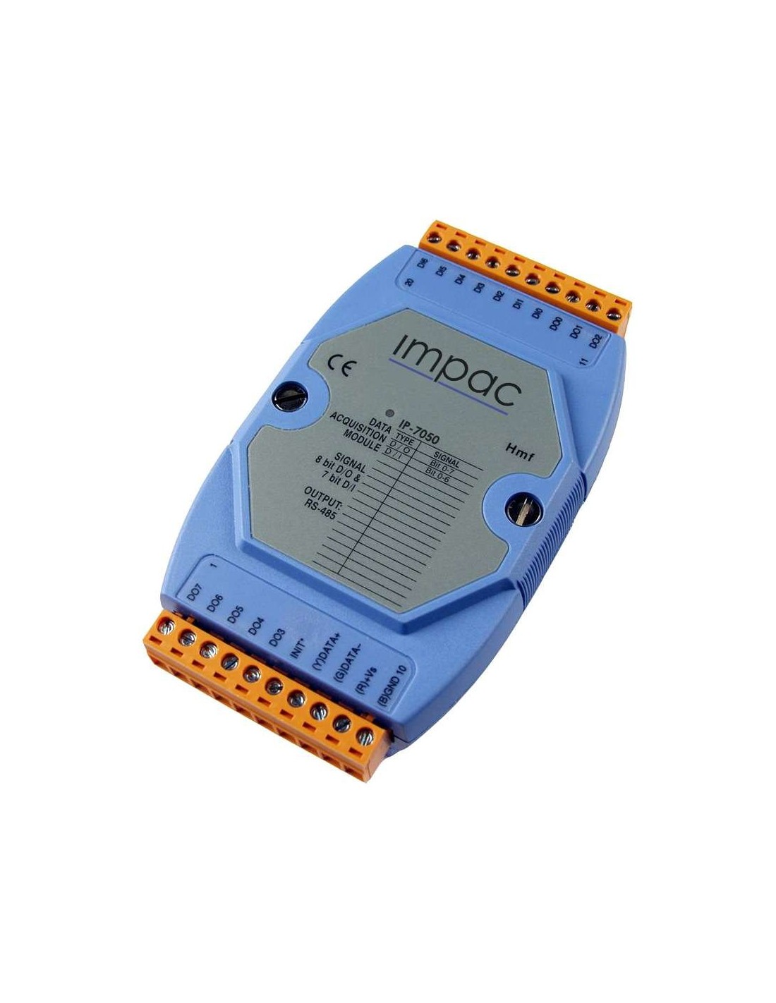 O Módulo Entrada Digital RS-485 IP-7050 oferece 7 canais de entrada digital e 8 canais de saída digital, não isolados.