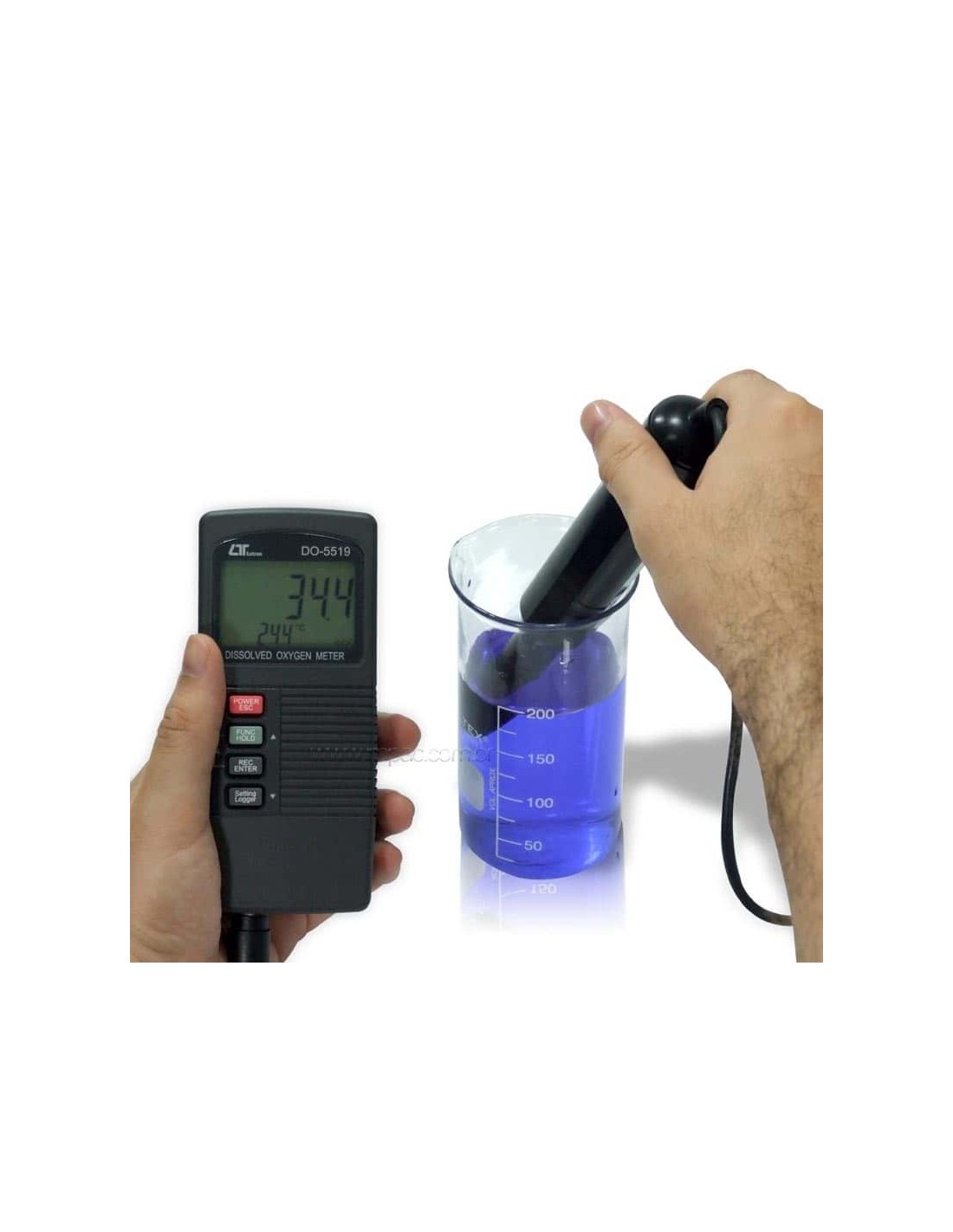 O medidor de oxigênio dissolvido coletor de dados Lutron DO-5519 é um instrumento destinado a medir a quantidade de oxigênio dissolvido em um determinado volume de água entre 0 e 20,0 mg/L. O Lutron DO-5519 pode ser usado como um coletor de dados ou datalogger fazendo as medições de oxigênio dissolvido em intervalos predeterminados e armazenando em sua memória.