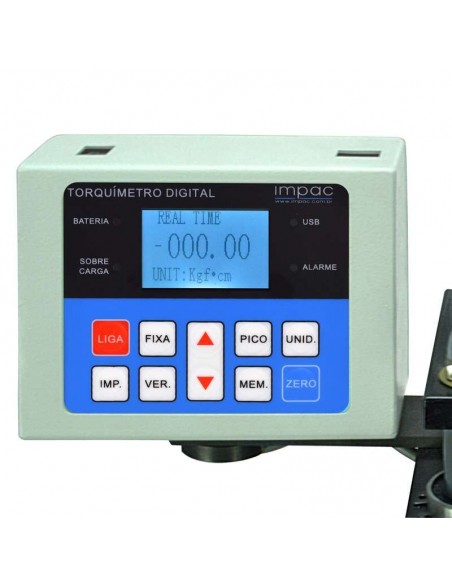 O torquímetro digital incorporado à Máquina de Calibração de Torque, permite medição de torque até 20 N.m com precisão (1%) em três unidades diferentes que são: N.m, lb.pol e Kg.cm.