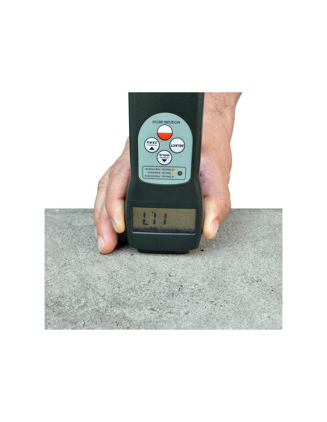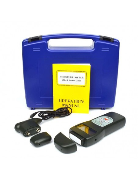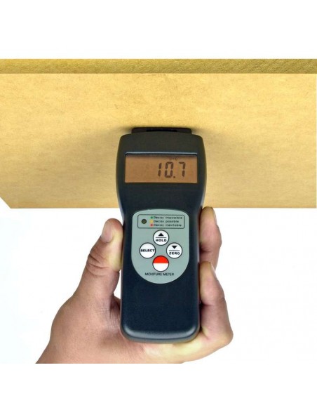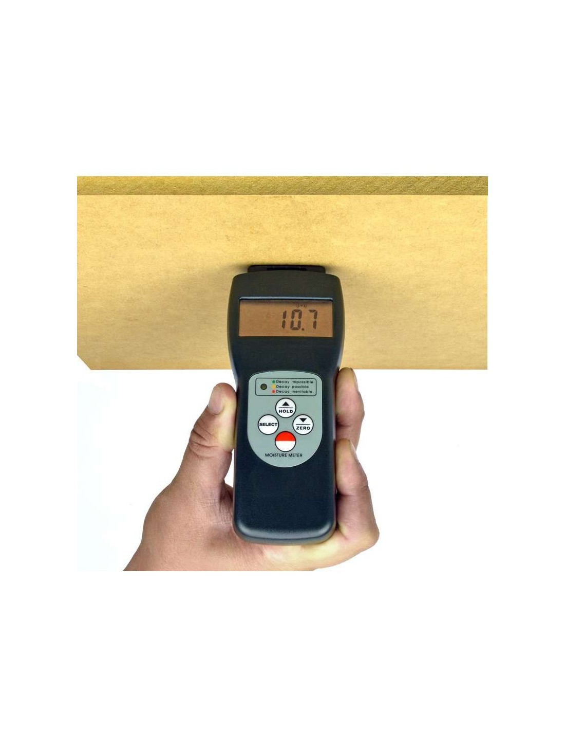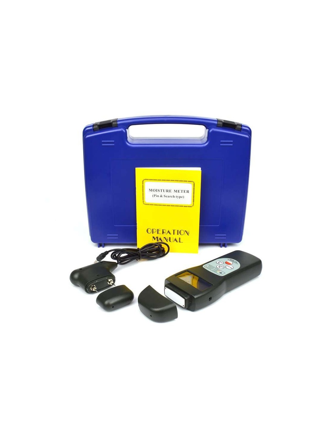 O Medidor de umidade de madeira, umidade de concreto e umidade de papel, é um medidor de umidade digital e portátil multifuncional, alimentado por bateria que dispõe de dois tipos de sensores, o de contato externo e o de aproximação incorporado ao instrumento.
