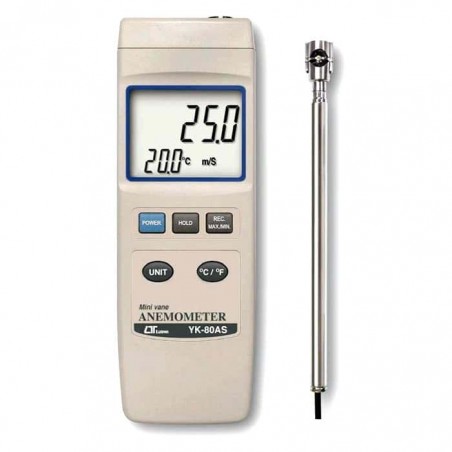 O Anemômetro Micro Hélice YK80AS é um instrumento de medição microprocessado com interface RS-232, versátil com excelente relação custo benefício e permite medir temperatura e velocidade do ar em pequenos orifícios ou em tubulações.