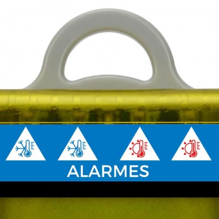 É possível determinar um limite de temperatura superior e inferior diretamente no painel do datalogger, determinando quanto tempo os produtos estiveram fora das especificações, visualização em Leds coloridos dos alarmes acima ou abaixo pré determinados.