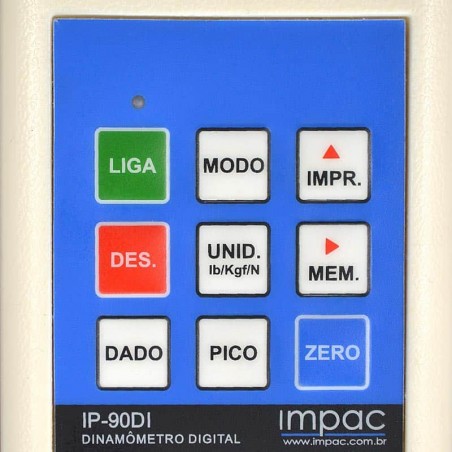 Os Dinamômetros Digitais Impac podem ser utilizados de uma maneira manual ou através de dispositivos de ensaio, onde as mesmas exercem a força, inclusive alguns modelos indicam o deslocamento. A família de Dinamômetros Digitais com Célula Externa IP-90 DI possuem diversas funções que facilitam a leitura e manuseio da força medida. Possuem memória interna para armazenar 896 leituras, Valor de Pico, função “Zero”. Permitem a medição de força em Quilogramas, Libras ou Newtons, bastando um simples toque de botão no painel.