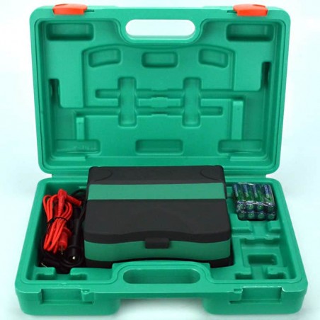 Nosso Medidor Digital de Ohm IM-302 é devidamente acomodado numa mala plastica com 3 pontas de teste, 8 pilhas de 1,5V e manual em português.